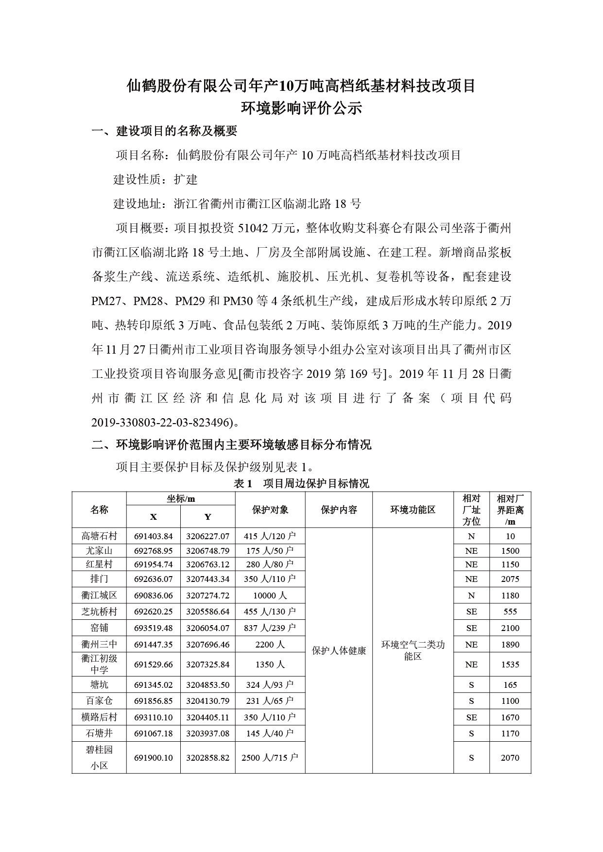 仙鶴股份有限公司年產(chǎn)10萬噸高檔紙基材料技改項(xiàng)目公參